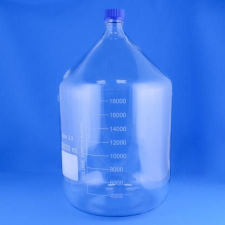 Банка для реактивов GL45, 20000 мл, Boro 3.3, светлое стекло, градуированная, с винтовой крышкой специальная лабораторная измерительная посуда, широко используемая при проведении различных исследований, опытов в медицинских, научных, учебных и производственных лабораториях. Изготовленные из боросиликатного стекла, устойчивого как к низким, так и к высоким температурам.