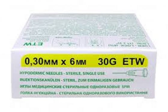 Калибр (диаметр) : 30G, что соответствует диаметру около 0,3 мм.