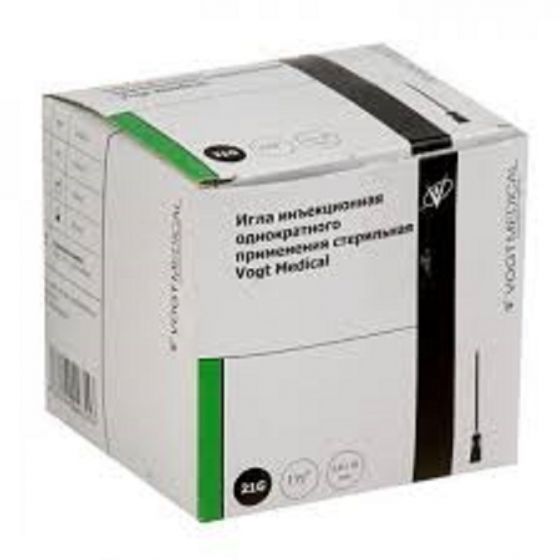 Игла инъекционная стерильная G 21 (0,8*40) Германия представляет собой металлическую трубку, один конец которой заострен, а на другом закреплена канюля.