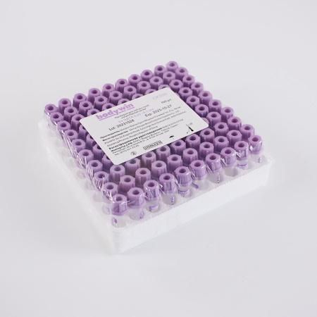 Микропробирки для гематологических исследований с ЭДТА - К2 (Этилендиаминтетраацетат) - используются для исследования цельной крови в гематологии – подсчете клеток крови, определении СОЭ и пр., ПЦР исследованиях (качественные и количественные методики), иммунохимии, генодиагностике. Антикоагулянт - этилендиаминтетраацетат (ЭДТА) и его щелочные соли способны создавать хелатные соединения с ионами кальция с образованием растворимых высокостабильных комплексов, тем самым предотвращая свертывание крови, при этом концентрация и характеристики клеточных и внеклеточных компонентов остаются практически неизменными. Наиболее эффективная концентрация ЭДТА – 1,2 мг/мл крови. Внутренние стенки пробирки покрыты сухой либо жидкой солью ЭДТА-К2 в концентрации 1,2 – 2,0 мг (0,00411 моль/л – 0,006843 моль/л) ЭДТА на 1 мл крови. Пробирки можно использовать для отбора проб непосредственно в анализаторе без необходимости их вскрытия. Эритроциты, лейкоциты и тромбоциты стабильны в крови с ЭДТА до 24 часов. Мазок крови необходимо сделать в течение 3 часов после взятия крови. Пробирки с ЭДТА-К2 можно использовать для иммуногематологического анализа, например определения групп крови, резус-фактора и скрининга антител, а также для определения вирусных маркеров в скрининговых лабораториях. Основное отличие соли ЭДТА-К2 от ЭДТА-К2 в том, что ЭДТА-К2 показывает меньшую способность поддержания крови в жидком состоянии, также ЭДТА-К2 влияет на подсчет лейкоцитов, занижая их количество. Наиболее широко используются пробирки, содержащие 1,95 мг ЭДТА/1мл крови.