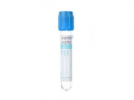 Вакуумные пробирки для коагулологических исследований с цитратом натрия - используются при исследованиях систем гемостаза; коагуляционных свойств крови: протромбин, тромбопластин, фибриноген, факторы свертывания. Пробирки заполнены буферным раствором цитрата натрия, представленного в двух концентрациях - 0.109 моль/л. (3.2%) или 0.129 моль/л (3.8%). Выбор концентрации зависит от принятой практики лаборатории. Цитрат натрия является антикоагулянтом для сбора венозной крови с целью проведения исследований коагуляционных свойств крови. Одна часть буфера цитрата натрия смешивается с девятью частями крови (соотношение к количеству забираемой крови 1/9), pH крови остается в пределах 7.1-7.35 (важно для протромбиновых параметров). При взятии проб крови в несколько пробирок у одного пациента пробирка с цитратом должна заполняться до пробирки с активатором свертывания. Очень важно соблюдать правильное соотношение кровь антикоагулянт в пробе с цитратом. Недостаток цитрата в пробе ведет к образованию микросгустков и/или коагуляции пробы, а избыток цитрата — к искажению результатов анализа за счет связывания кальция из реагентов. Сразу после взятия образца пробирку с цитратом необходимо аккуратного перемешать не менее 5 раз для предотвращения образования микросгустков.