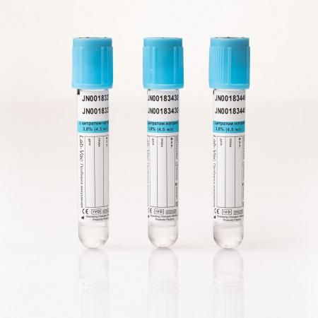 Пробирки с цитратом натрия 3,8%, 4,5 мл, 13х100 мм, для коагулологических исследований, Lab-Vac