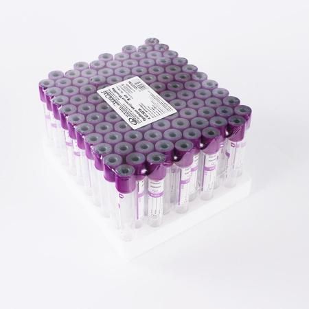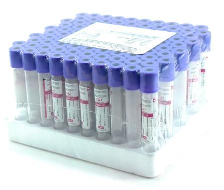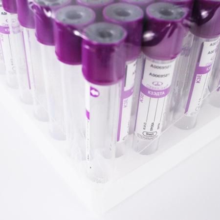 Вакуумные пробирки для гематологических исследований с ЭДТА-К3 (Этилендиаминтетраацетат) - используются для исследования цельной крови в гематологии – подсчете клеток крови, определении СОЭ и пр., ПЦР исследованиях (качественные и количественные методики), иммунохимии, генодиагностике. Антикоагулянт - этилендиаминтетраацетат (ЭДТА) и его щелочные соли способны создавать хелатные соединения с ионами кальция с образованием растворимых высокостабильных комплексов, тем самым предотвращая свертывание крови, при этом концентрация и характеристики клеточных и внеклеточных компонентов остаются практически неизменными. Наиболее эффективная концентрация ЭДТА – 1,2 мг/мл крови. Внутренние стенки пробирки покрыты сухой либо жидкой солью ЭДТА-К3 в концентрации 1,2 – 2,0 мг (0,00411 моль/л – 0,006843 моль/л) ЭДТА на 1 мл крови. Пробирки можно использовать для отбора проб непосредственно в анализаторе без необходимости их вскрытия. Эритроциты, лейкоциты и тромбоциты стабильны в крови с ЭДТА до 24 часов. Мазок крови необходимо сделать в течение 3 часов после взятия крови. Пробирки с ЭДТА-К3 можно использовать для иммуногематологического анализа, например определения групп крови, резус-фактора и скрининга антител, а также для определения вирусных маркеров в скрининговых лабораториях. Основное отличие соли ЭДТА-К2 от ЭДТА-К3 в том, что ЭДТА-К3 показывает меньшую способность поддержания крови в жидком состоянии, также ЭДТА-К3 влияет на подсчет лейкоцитов, занижая их количество. Наиболее широко используются пробирки, содержащие 1,95 мг ЭДТА/1мл крови.