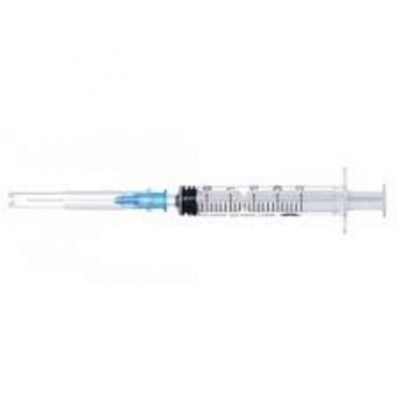 Шприц 2 мл. 3-х компонентный, номинальный объем 2,0 мл, дополнительная градуировка до 3,0 мл имеет абсолютно прозрачный цилиндр, покрытый силиконовой смазкой. Шток поршня цветоконтрастный (зелёный). Соединение иглы и шприца типа «Luer» эксцентрическое положение наконечника. Игла изготовлена из высококачественной медицинской