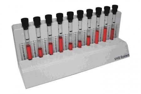 - Установить пробирку в штатив, совместить верхний уровень крови в пробирке с нулевым значением градуировки на штативе.