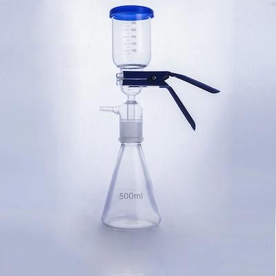 Система вакуумной фильтрации "MicroFiltr" на 500 мл - современная удобная лабораторная установка, позволяющая проводить вакуумную фильтрацию различных химических жидкостей. Вакуумная фильтрация применяется при проведении химического и биологического анализов с целью сокращения времени. Она используется для получения как осадка, так и чистого фильтрата. Позволяет полнее отделять жидкость от твердых включений, полученный осадок легче промывается от остатков жидкости. Классическая установка для фильтрования под вакуумом собирается из фарфоровой воронки Бюхнера и колбы Бунзена при обязательном использовании бумажных обеззоленных фильтров.