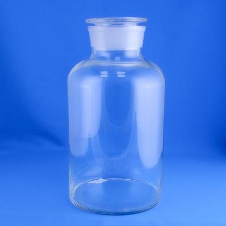 Склянка для реактивов широкое горло из специального  двойного лабораторного светлого стекла. Отличается термической и химической стойкостью. Коэффициент температурного расширения применяемого стекла ниже, чем у обычного, что позволяет стеклу не трескаться при резких изменениях температуры.  Представленная ёмкость выгодно отличается от прочих химических бутылей надёжной и практичной стеклянной притёртой пробкой, плотно закупоривающей горло, что обеспечивает полную герметичность, а также удобство при открытии или закрытии склянки. Тара рассчитана для длительного хранения химических реактивов, в том числе летучих, фотолабильных и пахучих веществ