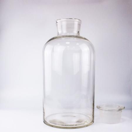 Склянка для реактивов широкое горло из специального двойного лабораторного светлого стекла. Отличается термической и химической стойкостью. Коэффициент температурного расширения применяемого стекла ниже, чем у обычного, что позволяет стеклу не трескаться при резких изменениях температуры. Представленная ёмкость выгодно отличается от прочих химических бутылей надёжной и практичной стеклянной притёртой пробкой, плотно закупоривающей горло, что обеспечивает полную герметичность, а также удобство при открытии или закрытии склянки. Тара рассчитана для длительного хранения химических реактивов, в том числе летучих, фотолабильных и пахучих веществ