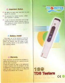 - Оценка жёсткости воды: (путём перевода данных дисплея) 1 dH = 17.8 ppm, 1 f = 10 ppm, 1 мг-экв/л = 50.05 ppm CaCO3 dH
