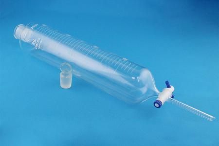 Воронка делительная ВД-1-2000 мл, цилиндрическая, с фторопластовым краном, на 2000 мл - этот инструмент применяется для разделения жидких несмешивающихся веществ разной плотности, как, например, для проведения органического синтеза. Одна из самых частых сфер применения - жидкостная экстракция. Небольшой фторопластовый кран используется для контролируемого процесса выпуска более тяжелой фракции, опустившейся ко дну воронки в процессе разделения.
