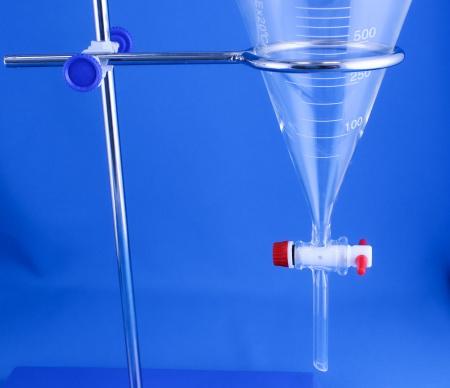 Воронка делительная ВД-3-1000, грушевидная, с фторопластовым краном, на 1000мл предназначена для разделения несмешивающихся жидкостей в процедурах экстрагирования.