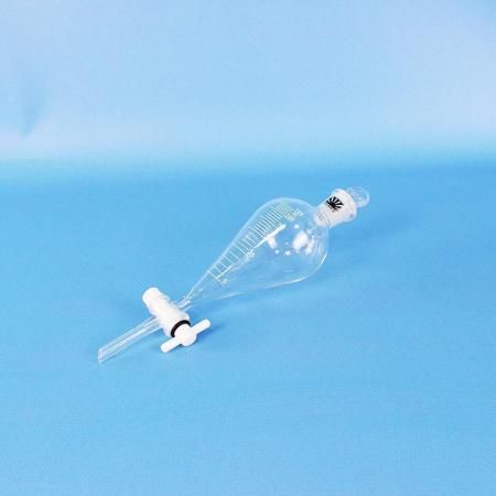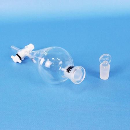 Воронка делительная ВД-3-125 грушевидная 125 мл с фторопластовым краном ISO 4800 - предназначена для разделения несмешивающихся жидкостей в процедурах экстрагирования. Изготовлена из химико-лабораторного стекла.
