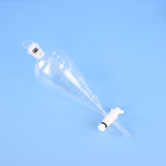 Воронка делительная ВД-3-500 грушевидная с фторопластовым краном ISO 4800 - предназначена для разделения несмешивающихся жидкостей в процедурах экстрагирования. Изготовлена из химико-лабораторного стекла.