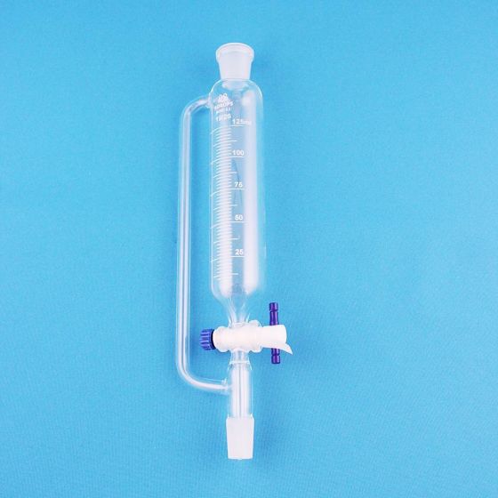 Воронка капельная цилиндрическая ВД-2-125, 125 мл, с компенсатором давления, шлиф 19/26 - она разработана для тщательного переноса и добавления жидкостей, эта воронка имеет цилиндрическую форму для стабильности и однородности, стеклянную пробку для надежного уплотнения и стеклянный кран для плавного, контролируемого дозирования.
