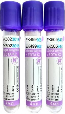 - Пробирки с ЭДТА К2 и гелем, объём 2 мл, для гематологических исследований