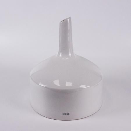 Воронка Бюхнера, диаметром 250 мм – это специализированное лабораторное фильтрационное устройство, состоящее из плоской перфорированной пластины, широкого конического корпуса и цилиндрического стержня, выходящего из дна. Перфорированная пластина, также известная как фритта, предназначена для поддержки фильтровальной бумаги или фильтрующей мембраны в процессе фильтрации.