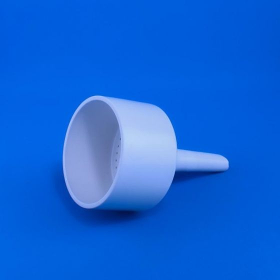 Конический корпус воронки рассчитан на большой объем жидкости, что позволяет эффективно фильтровать даже значительные объемы образца. Широкие наклонные стенки помогают направлять жидкость к перфорированной пластине, обеспечивая прохождение всего образца через фильтр.